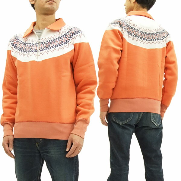バーンズ アウトフィッターズ ハーフジップ スウェットシャツ 雪柄 BR-7301 メンズ #65オレンジ 新品