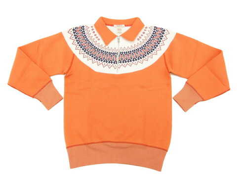 クラシックなスノーパターンのハーフジップスタイルのスウェットシャツをモチーフに、ユニオンスペシャル・フラットシーマ縫製の丸胴ボディを採用したビンテージライクな衿付きハーフジップスウェットシャツです。